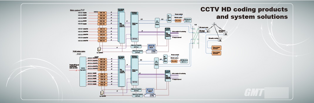 The current site of CCTV establishes the high definition and compression system of the paid channel adopts the AVS+ encoder with the independent innovation of guoao to encode the high definition signal. The system adopts intelligent dual backup architecture, which can be controlled by the unified network of the system when the input signal or equipment fails.